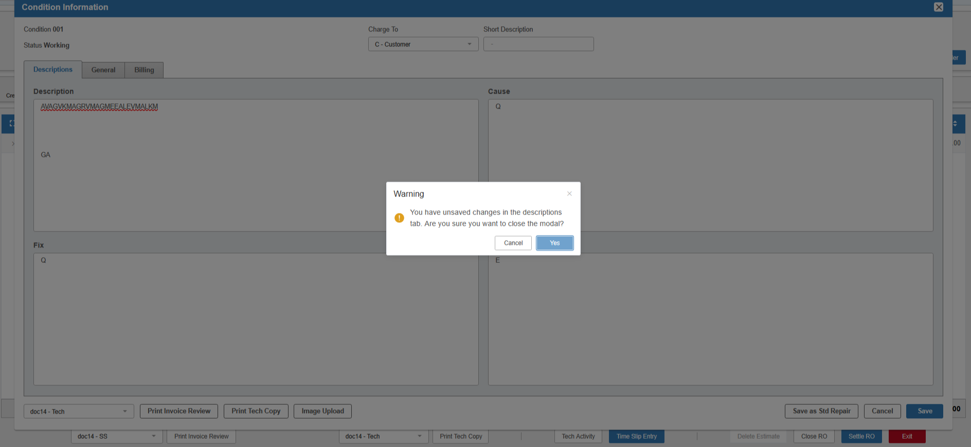 - RO Details (Line items/Conditions)